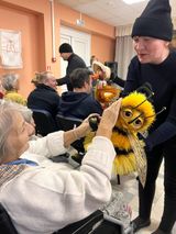 Многие уже видели нашу новую постановку «Добрые сказки», про пчелку Черемушку и воробьишку Дюшу. А получатели социальных услуг нашего интерната увидели ее впервые, как-то так получилось.
