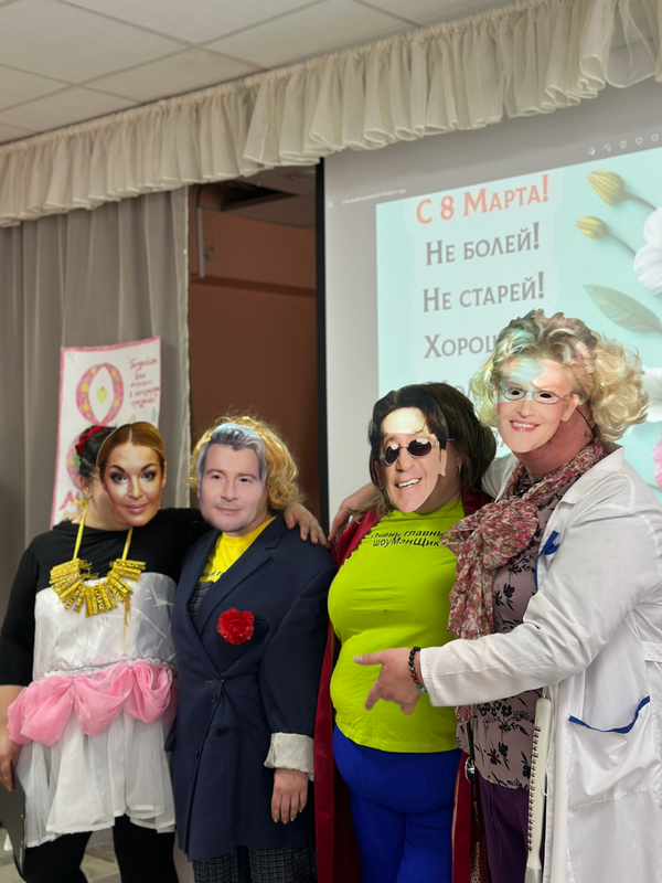В этот особенный день мы решили порадовать наших прекрасных девушек и устроили концерт! И знаете, что удивительно? На сцене выступали такие звезды, как Елена Малышева, Олег Газманов и многие другие! И пусть это всего лишь маска на лицах наших сотрудников и проживающих, ведь главное это полученные эмоции!