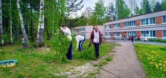 11 июня 2019 года сотрудники ПНИ «Черёмушки», совместно с получателями социальных услуг, дружно приняли участие в мероприятии по уборке территории. Денёк выдался ясным, солнечным, что поспособствовало повышению нашей работоспособности. Разделившись на группы, участники очищали территорию интерната и близлежащие зоны, собирали мусор, прошлогоднюю листву и траву, выносили старые ветви деревьев, приводили в порядок цветочные клумбы, готовили к покраске бордюры. Поддерживать хорошее настроение всем, вышедшим на субботник, помогали отличная погода и веселая музыка.